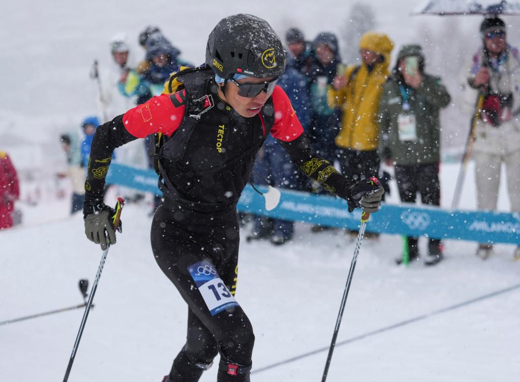 中国队选手布鲁尔在滑雪登山男子个人短距离比赛中。新华社记者 胡虎虎 摄