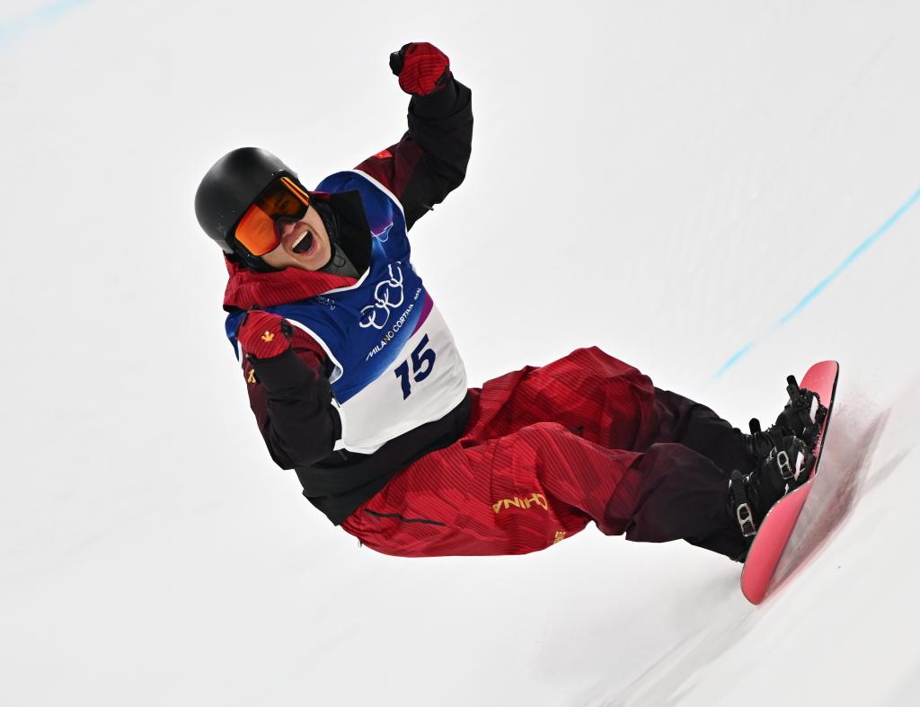 王梓阳在单板滑雪男子U型场地技巧决赛中。新华社记者 张宏祥 摄