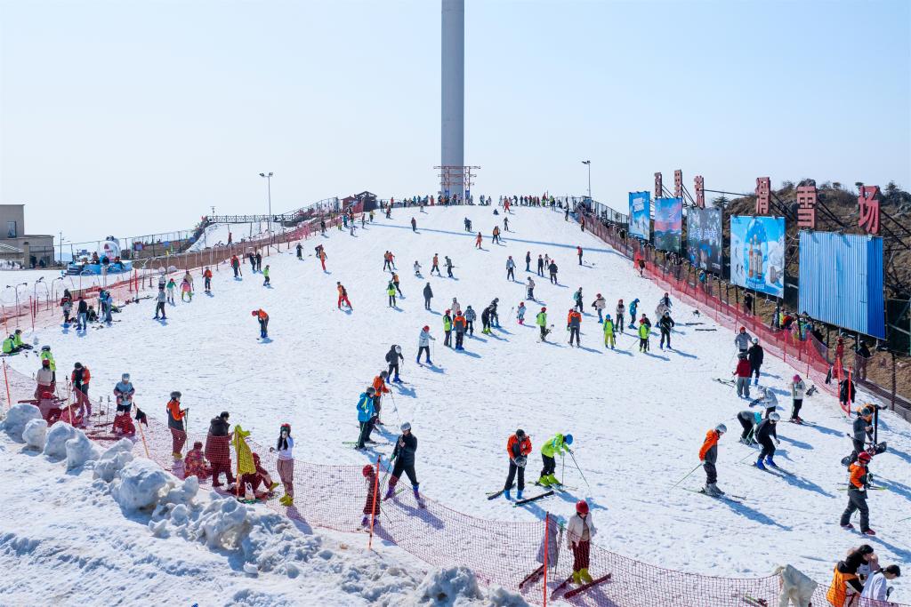2月21日,游客在湖北省宜昌市夷陵区的百里荒滑雪场体验滑雪。新华社发(张国荣 摄)