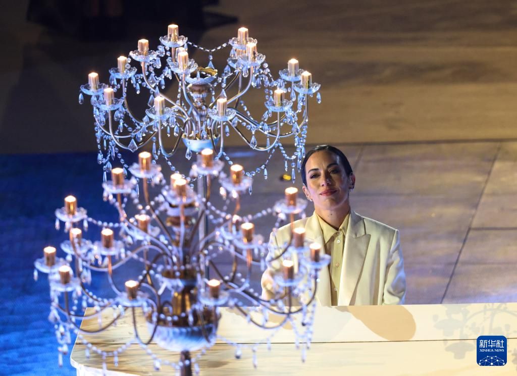 这是2月22日在闭幕式上拍摄的奥运圣火火种。