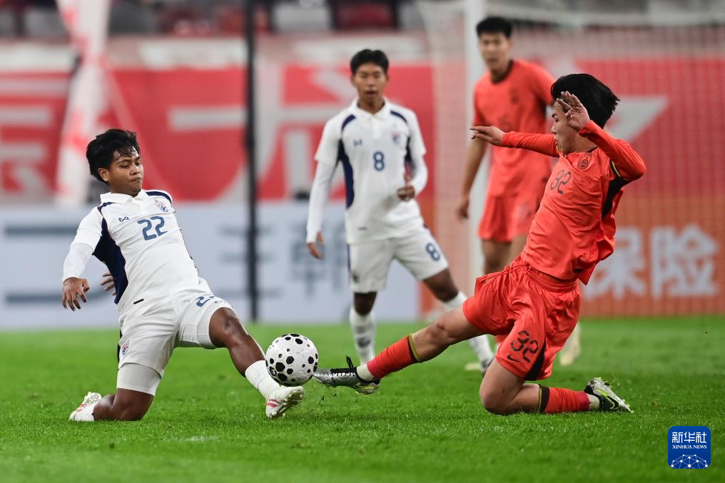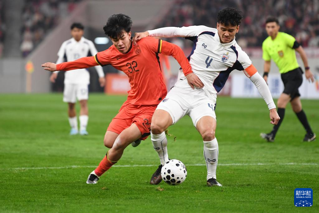 3月25日,在陕西西安举行的2026CFA中国之队·“丝路欢乐世界”西安国际青年足球锦标赛首轮比赛中,中国U23队2比2战平泰国U23队。