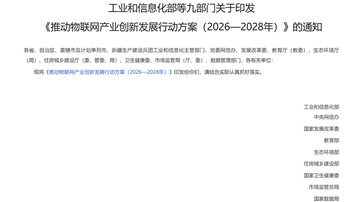 九部门印发《方案》推动物联网产业创新发展
