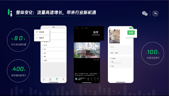 在短视频领域,过去一年,视频号的内容生态日渐繁荣,视频号用户消费时长也正在逐渐接近朋友圈。其中,基于推荐算法的视频播放量同比去年增长超过400%。