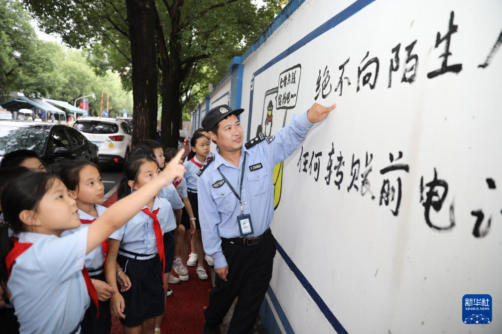 9月14日,浙江省东阳市公安局江北派出所的辅警向江北二小的学生讲解网络安全知识。