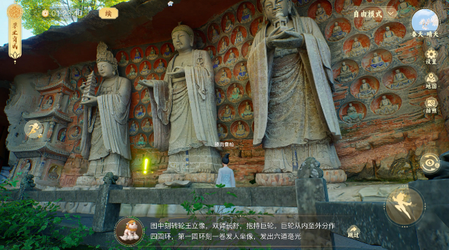据项目相关人士介绍,《云游·大足石刻》基于毫米级的高精度数字孪生建模和实时云渲染技术,不仅精确记录了大足石刻的每尊雕像和景观,还为用户提供了8K影视级的视觉呈现和自由开放的探索路线。用户可以通过该线上场景自由在景区中游览。