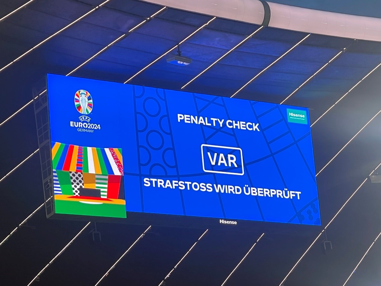 在德国与苏格兰的首场比赛中,海信VAR助理裁判技术给出本届欧洲杯第一张红牌第一颗点球。据了解,这是欧足联历史上首次开放VAR显示独家权益,中国企业的显示技术在最严苛的场景中得到检验和认可。