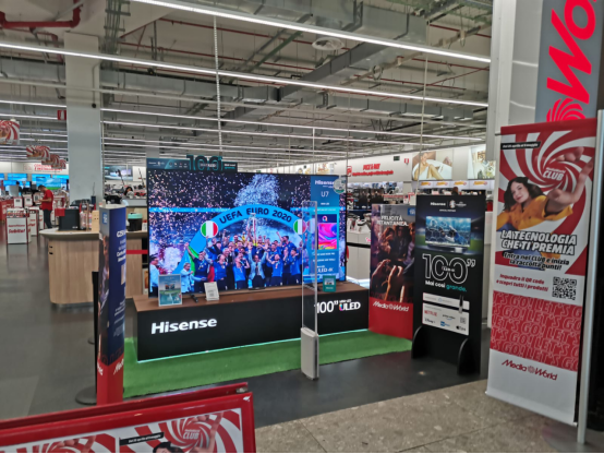 除了在国内取得亮眼成绩以外,海信在全球市场不断发力,2023年,海信电视在500美元以上海外市场销量提升59%,海信激光电视成功进入3000-5000美元高端市场,在德国、法国、意大利、西班牙等品牌高地,销量同比增长超过70%。据Omdia 2024年第一季度数据,海信98吋及以上电视全球出货量份额29.9%,100吋及以上电视全球出货量份额56.2%,均排名世界第一。