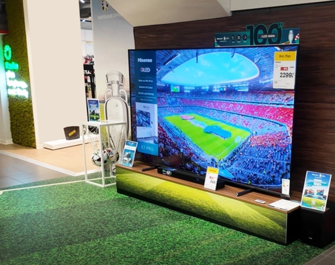 赛场外,来自中国制造的大屏电视深受法国当地消费者的追捧,为当地消费者提供了大屏视听观赛的品质选择。据海信法国公司总经理刘韬介绍,今年1-6月,海信电视在法国市场的销售额同比增长20.8%,其中100寸电视市场份额排名第一,激光电视销售量同比增长87%。