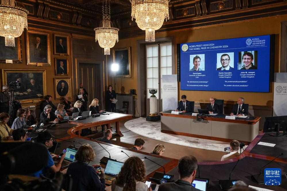 新华社斯德哥尔摩10月9日电(记者郭爽)瑞典皇家科学院9日宣布,将2024年诺贝尔化学奖授予美国华盛顿大学西雅图分校的戴维·贝克,以及谷歌旗下“深层思维”公司的德米斯·哈萨比斯和约翰·江珀,以表彰他们破解了蛋白质神奇结构的密码。