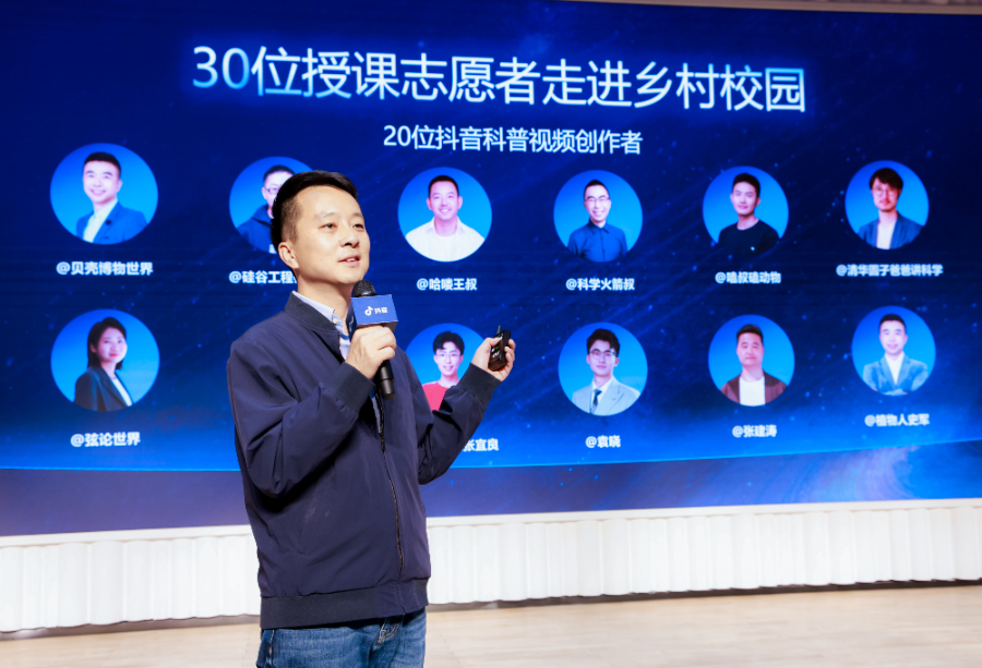 此外,多位抖音创作者也来到活动现场,共同就“如何利用新媒体助力乡村科学教育”话题展开讨论。