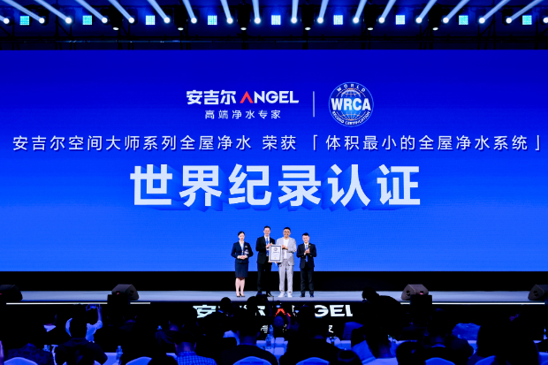 今年4月18日,WRCA世界纪录认证官马克西姆在安吉尔新品发布会上宣布,安吉尔空间大师系列全屋净水荣获“体积最小的全屋净水系统”世界纪录认证。