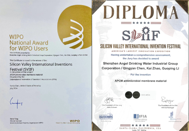凭借着技术的突破,安吉尔APCM航天除菌科技荣获今年美国硅谷国际发明展金奖及联合国世界知识产权组织(WIPO)国家奖。中国净水科技已切实走在全球前列,引领着行业的风潮。