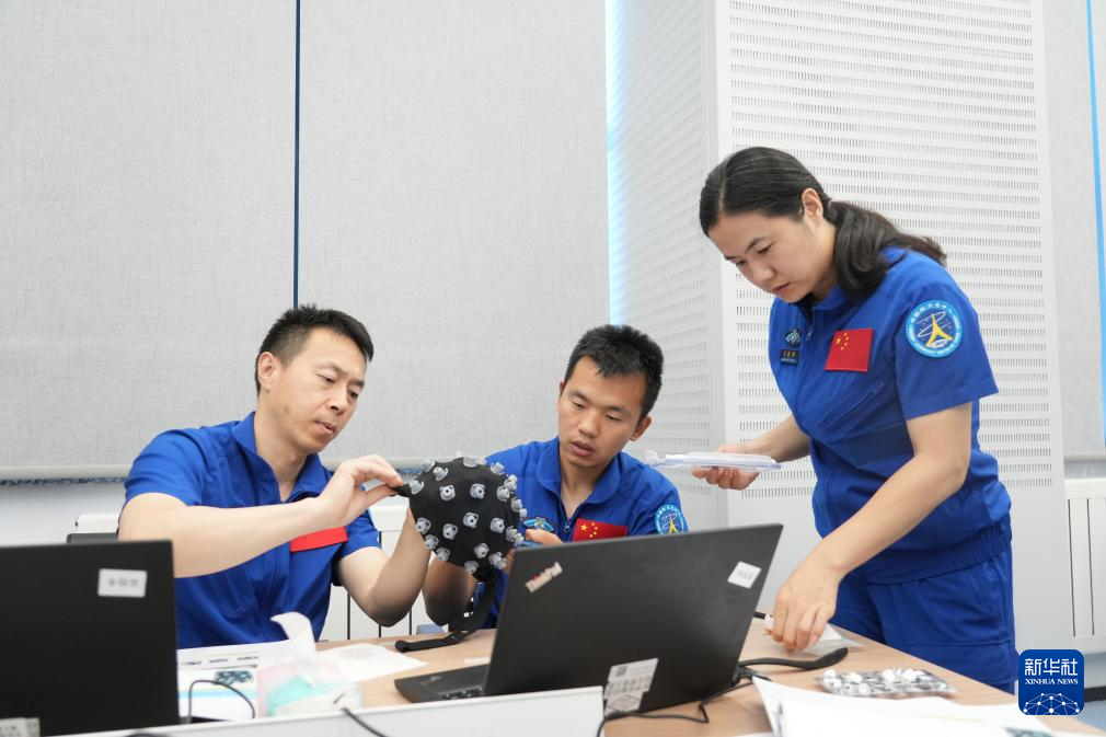神舟十九号航天员乘组进行脑电项目操作训练(2024年5月31日摄 )。新华社发(孔方舟摄)