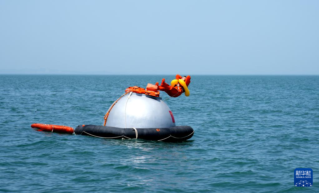 神舟十九号航天员宋令东进行海上救生训练(2023年7月6日摄)。新华社发(孔方舟摄)