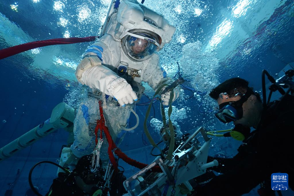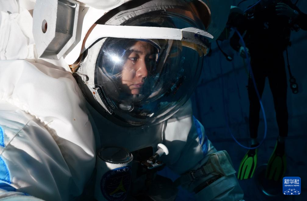 神舟十九号航天员蔡旭哲进行水下训练(2024年9月4日摄)。新华社发(孔方舟摄)