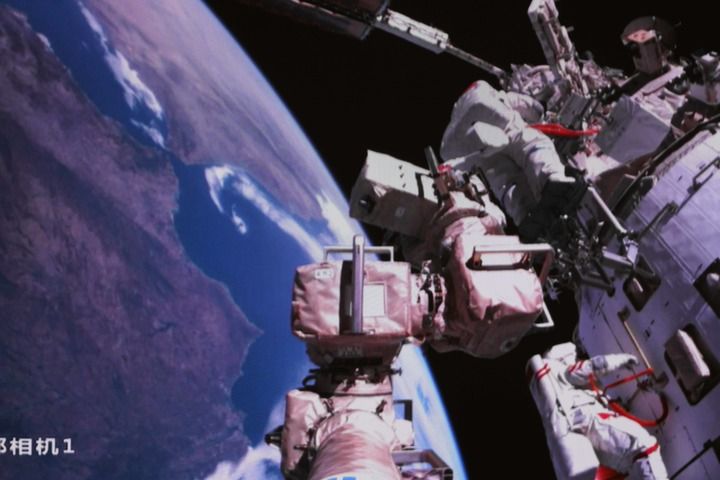 他们二人身着我国新一代“飞天”舱外航天服,上面的航天员签名见证了中国航天一个又一个纪录——