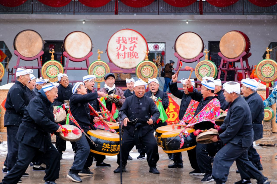 在山西临汾主播@唐尧锣鼓张勇 办的“村晚”上,张勇和来自周边村落的锣鼓民间艺人展示了传统威风锣鼓曲牌,找回了临汾“消失的鼓声”。一场“村晚”直播吸引了790万网友观看,更让晋南威风锣鼓火出山西,和张勇一起登上了央视《开门迎春晚》舞台。