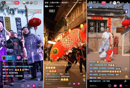 抖音直播相关负责人表示,对特色民俗的弘扬保护要从“被看见”开始。“才艺主播正在成为乡村文化生活的重要参与者和贡献者。在抖音,平均每天约80场‘村晚’直播上演,才艺主播办‘村晚’展现家乡民俗正在成为新风潮。”