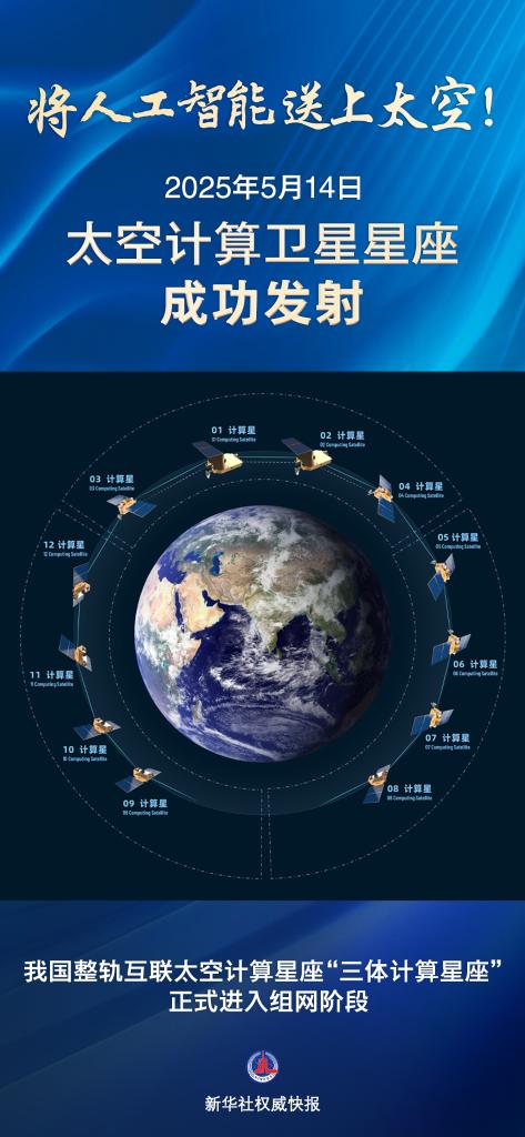 记者5月14日从浙江省新型研发机构之江实验室了解到,随着太空计算卫星星座14日在酒泉卫星发射中心成功发射,我国整轨互联太空计算星座“三体计算星座”正式进入组网阶段。