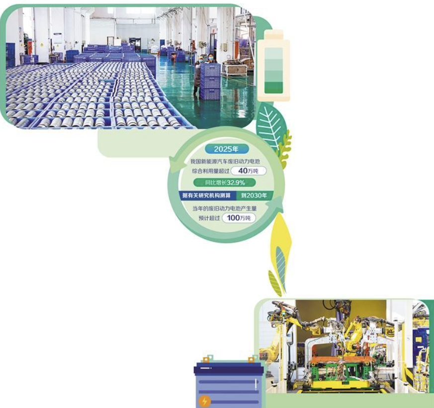 经过多年探索实践,我国废旧动力电池回收利用体系建设已取得积极成效。数据显示,2025年,我国新能源汽车废旧动力电池综合利用量超过40万吨,同比增长32.9%,骨干企业锂、钴、镍等金属回收率处于国际先进水平。