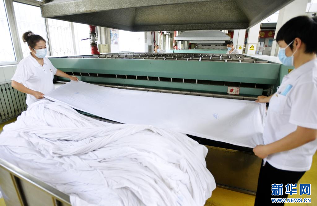 8月23日,北京客运段洗涤车间的工作人员在对洗涤后的卧具进行高温熨烫。 中国铁路北京局集团有限公司北京客运段为保障旅客出行安全,加强列车卧具、窗帘、台布洗涤过程中的防疫消毒工作,北京客运段洗涤车间的所有洗涤物品都要经过洗涤前消毒、高温洗涤、灭菌洗涤和高温熨烫四道消杀灭菌工序,保障铁路出行安全。 新华社记者 李欣 摄pagebreak
