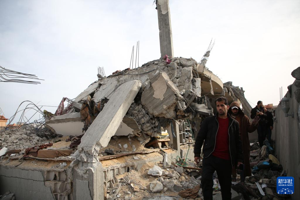 3月26日,在加沙地带南部城市拉法,人们查看以军空袭后的废墟。新华社发(哈立德·奥马尔摄)
