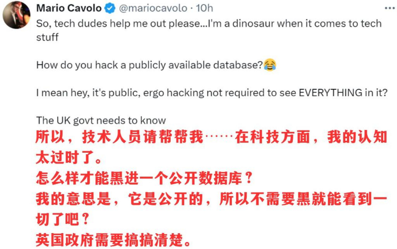 更重要的是,相关政客言论中的逻辑谬误也让人不忍直视。脱口秀特意截取了英国议会议员帕特·麦克法登的提问:“副首相为什么认为中国政府会去黑一个公开数据库?”这也让美国作家马意骏忍俊不禁: