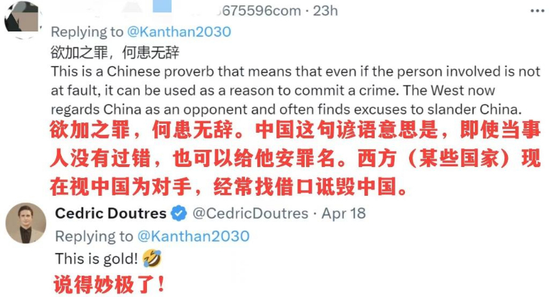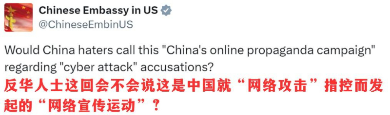 中国驻美大使馆在社交平台转发脱口秀时也帮忙发问: