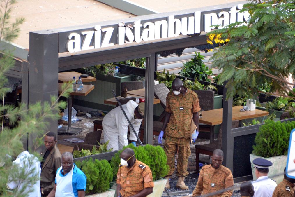 2017年8月14日,在布基纳法索瓦加杜古,安全人员在恐怖袭击事件现场工作。新华社发(雷米摄)