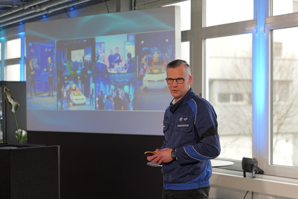 2月27日,宝马慕尼黑工厂厂长彼得·韦伯在德国慕尼黑举行的发布会上作介绍。新华社记者 邰思聪 摄