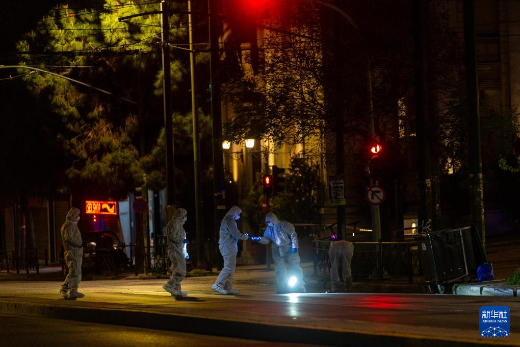 4月11日,在希腊雅典,工作人员调查爆炸现场。 新华社发(马里奥斯·罗洛斯摄)