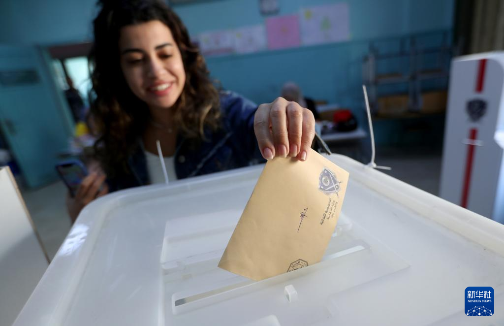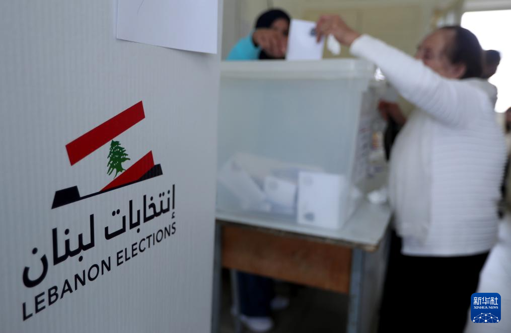5月4日,选民在黎巴嫩山省的一处投票站投票。新华社发(比拉尔·贾维希摄)