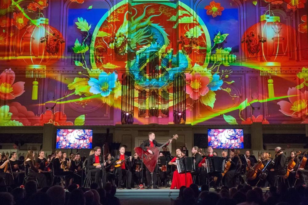 2019年11月13日,在俄罗斯圣彼得堡卡贝拉音乐厅,上海民族乐团与安德烈耶夫国立模范民族乐团的艺术家共同为观众献上了一场名为《海上生民乐·和平颂》的精彩音乐会,开启了上海民族乐团2019俄罗斯巡演之旅。