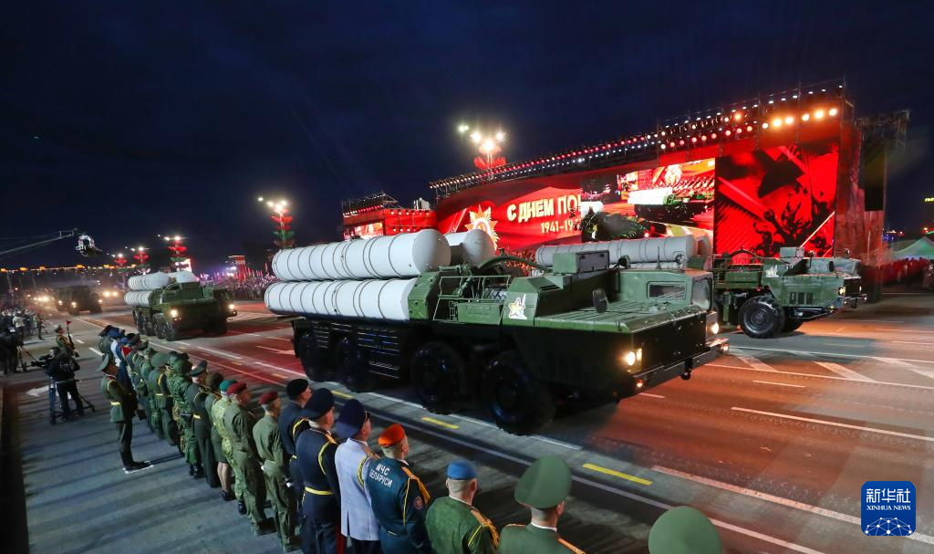 这是5月9日在白俄罗斯首都明斯克拍摄的参加纪念苏联伟大卫国战争胜利80周年阅兵式的坦克。新华社发(任科夫摄)