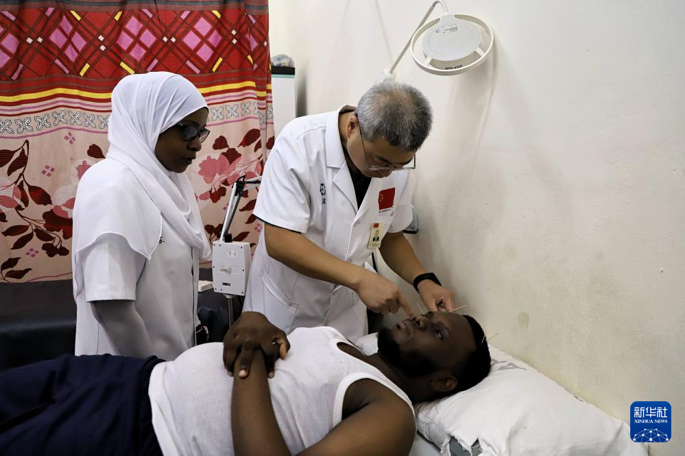 纳兹莫加医院的护士法蒂玛·阿卜杜拉正独立为患者针灸。她是李登科的徒弟。“我从2021年开始学习中医,到现在已经4年了。”她笑着告诉记者,“每一期医疗队的中医专家都是我的老师。针灸、按摩、经络推拿……他们教得很认真,我也很用心地学习,现在已经可以独立使用针灸技术治疗病人了。”