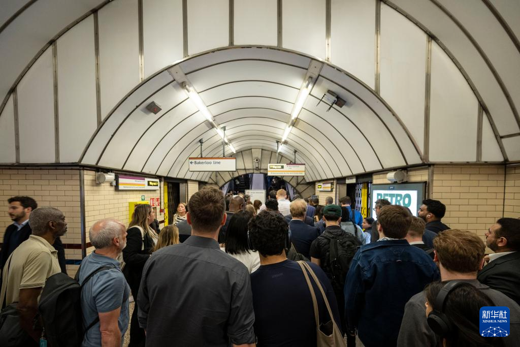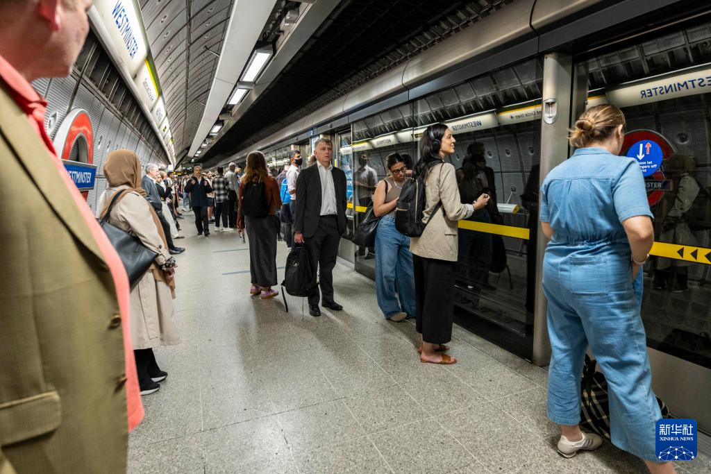 5月12日,人们在英国伦敦威斯敏斯特地铁站等待延误的列车。新华社发(史蒂芬·程摄)