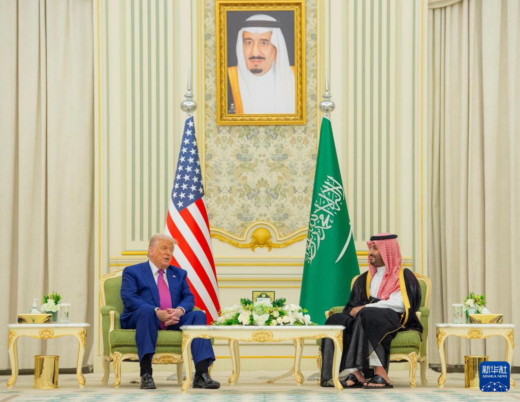5月13日,在沙特阿拉伯利雅得,沙特王储穆罕默德·本·萨勒曼(右)会见美国总统特朗普。新华社发(沙特通讯社供图)