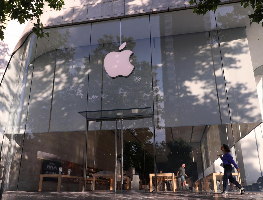 这是5月23日在比利时布鲁塞尔拍摄的一家苹果门店。新华社记者赵丁喆摄