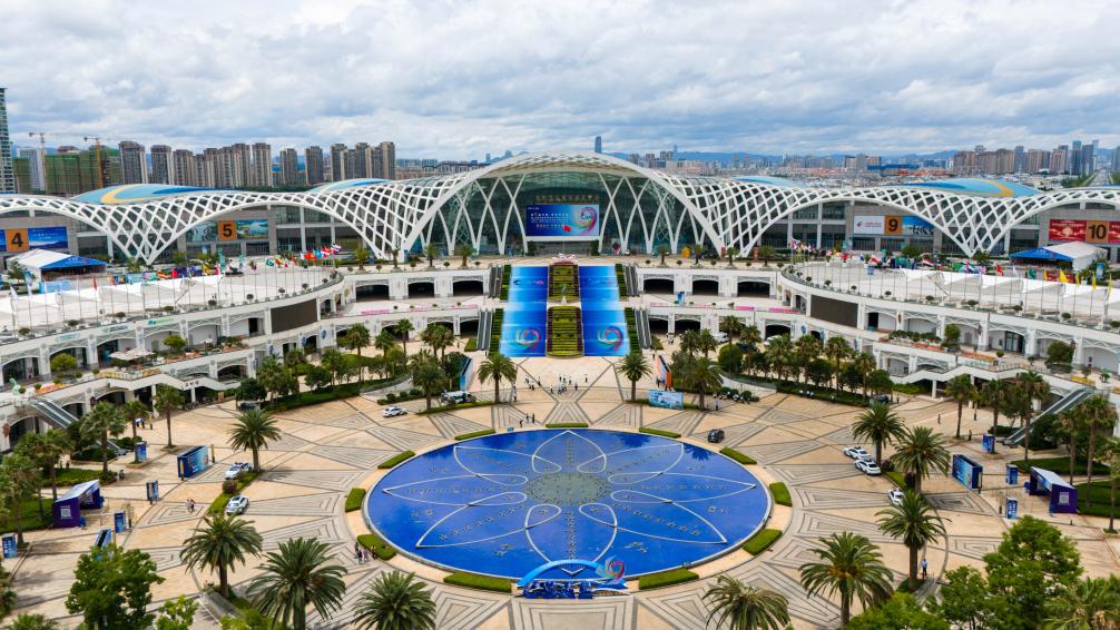6月18日拍摄的第9届中国—南亚博览会举办地昆明滇池国际会展中心(无人机照片)。新华社发(彭奕凯摄)