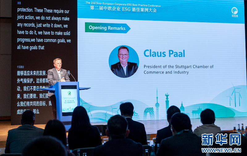 德国斯图加特工商会主席克劳斯·帕尔在致辞中说,当前我们正面临一个新的时代,全球各地的企业面临着许多新的机遇和挑战。而ESG是一个非常重要的话题,也是不同国家的企业加强交流合作的支点。“在未来实现可持续发展,我们需要扎实推进人类共同的目标。在此方面,中国已经走在了正确的道路上。”他说:“我们会继续努力,与中国一起合作,更好推进自由贸易和公平竞争。”