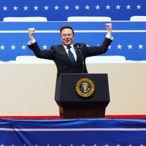 这是1月20日埃隆·马斯克在美国首都华盛顿第一资本体育馆讲话的资料照片。新华社记者 吴晓凌 摄