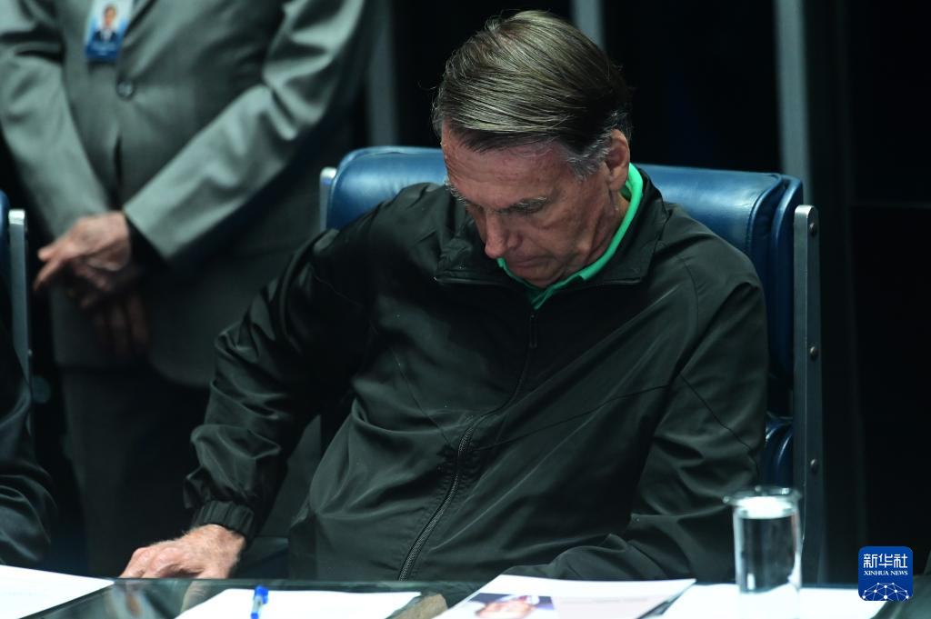 7月17日,在巴西首都巴西利亚,前总统博索纳罗出席巴西参议院特别会议。新华社发(卢西奥·塔沃拉摄)