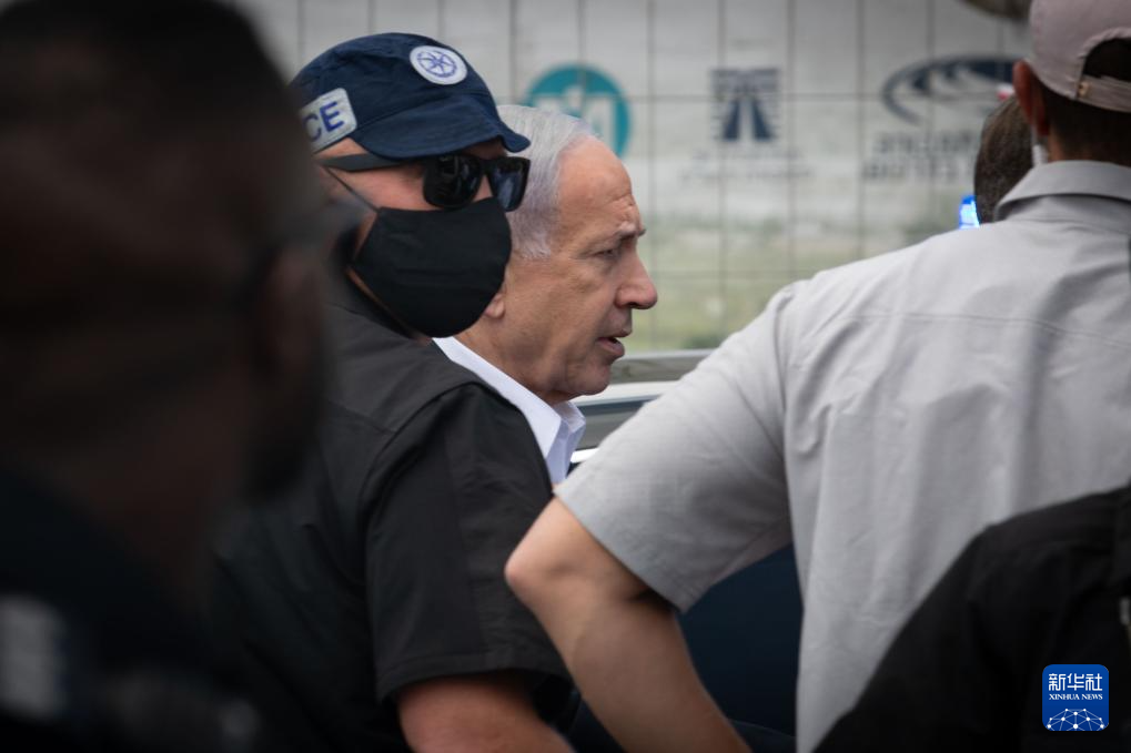 9月8日,以色列总理内塔尼亚胡出现在耶路撒冷枪击事件现场。新华社记者 陈君清 摄