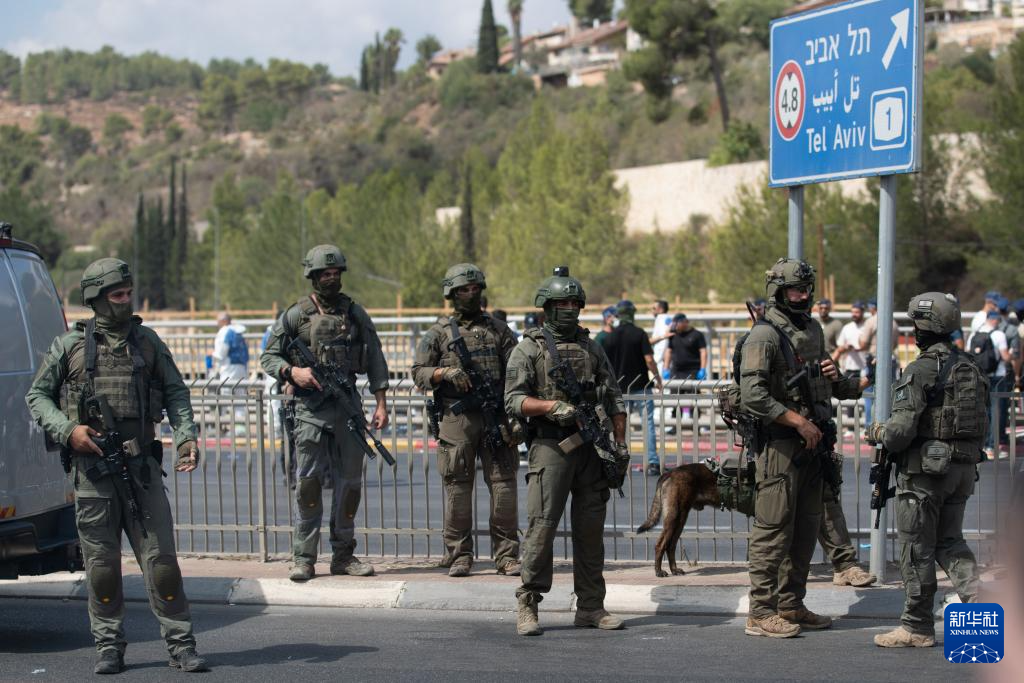 9月8日,安全人员在耶路撒冷枪击事件现场工作。新华社记者 陈君清 摄