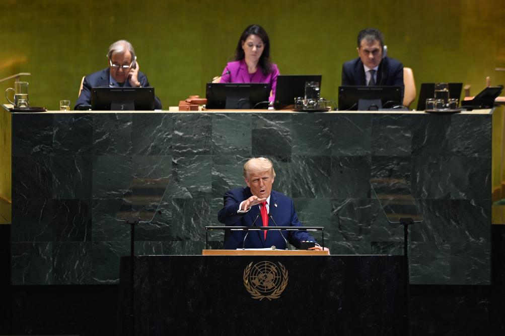 9月23日,在位于纽约的联合国总部,美国总统特朗普在第80届联合国大会一般性辩论上发言。新华社记者李睿摄