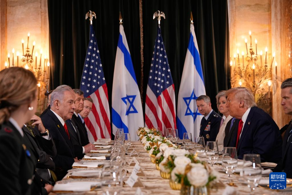12月29日下午,美国总统特朗普在佛罗里达州海湖庄园会晤到访的以色列总理内塔尼亚胡。新华社/美联