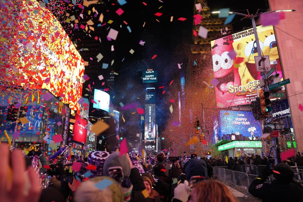 2025年12月31日,人们在美国纽约时报广场参加跨年庆祝活动。