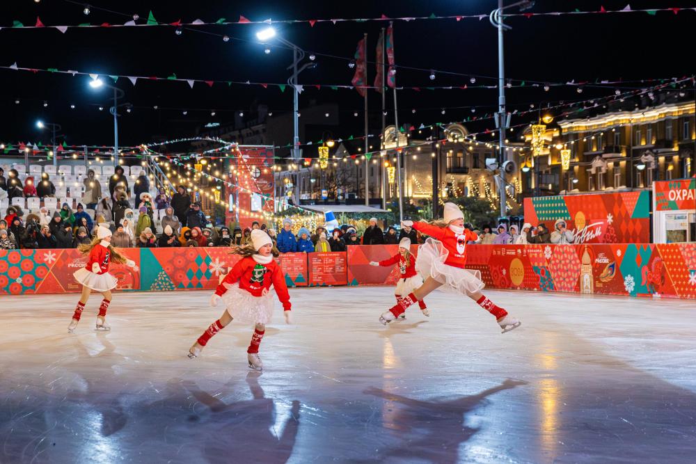 2025年12月31日,人们在俄罗斯远东城市符拉迪沃斯托克观看迎新年表演。
