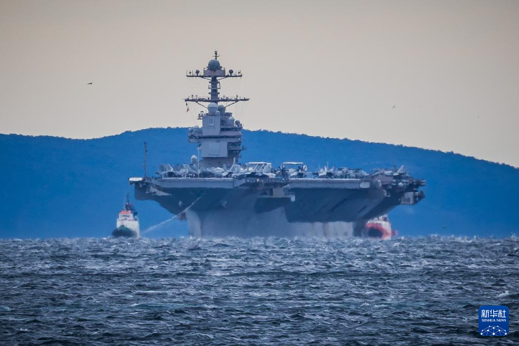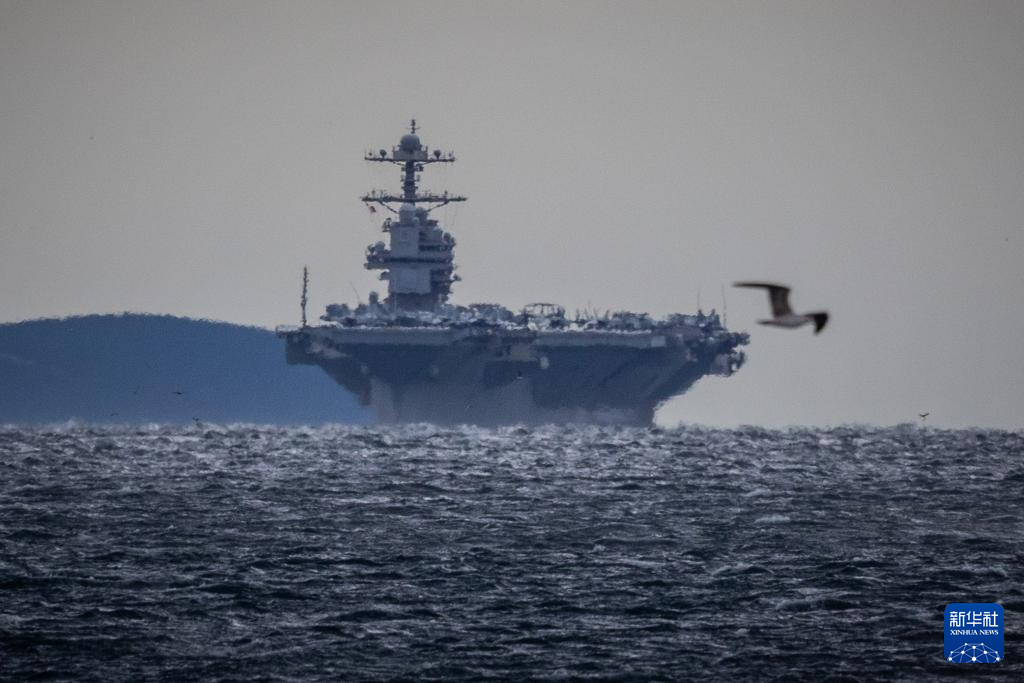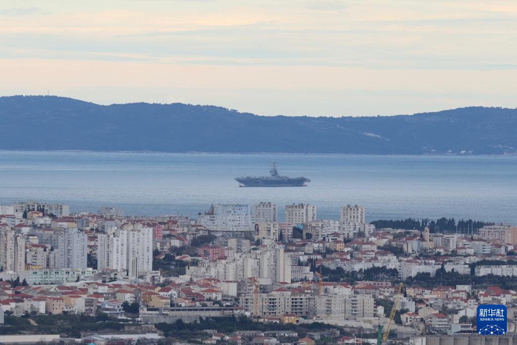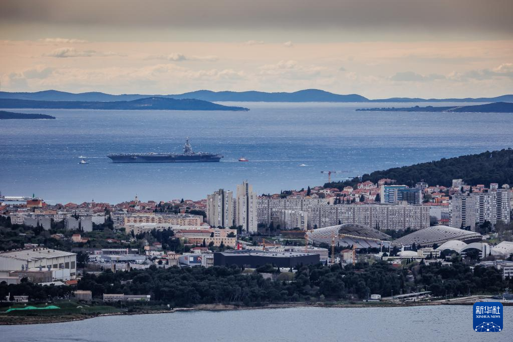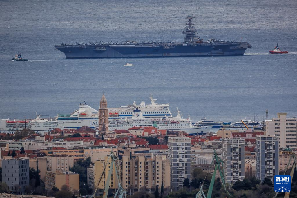 3月28日,美国海军“福特”号核动力航母驶入克罗地亚斯普利特港口水域。新华社发(Pixsell图片社/兹沃尼米尔摄)