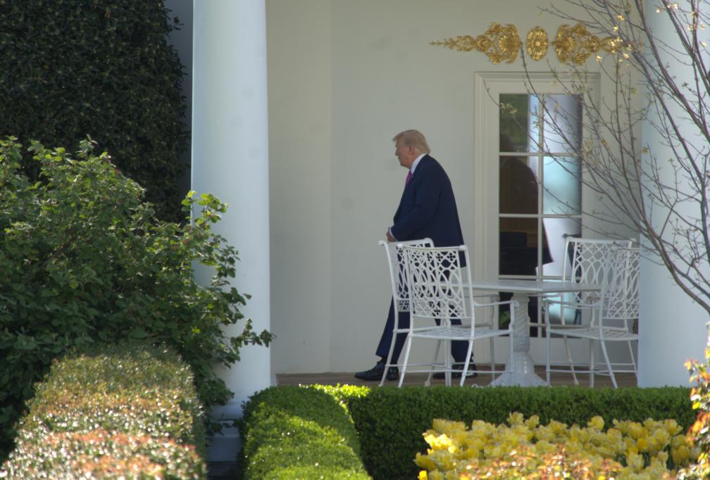 4月10日,美国总统特朗普准备离开华盛顿白宫。新华社发(李源清摄)